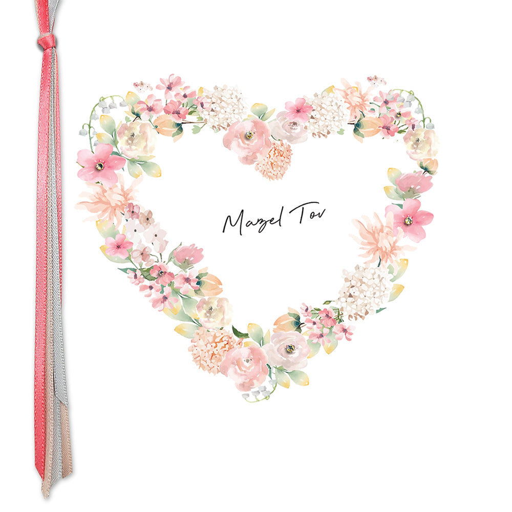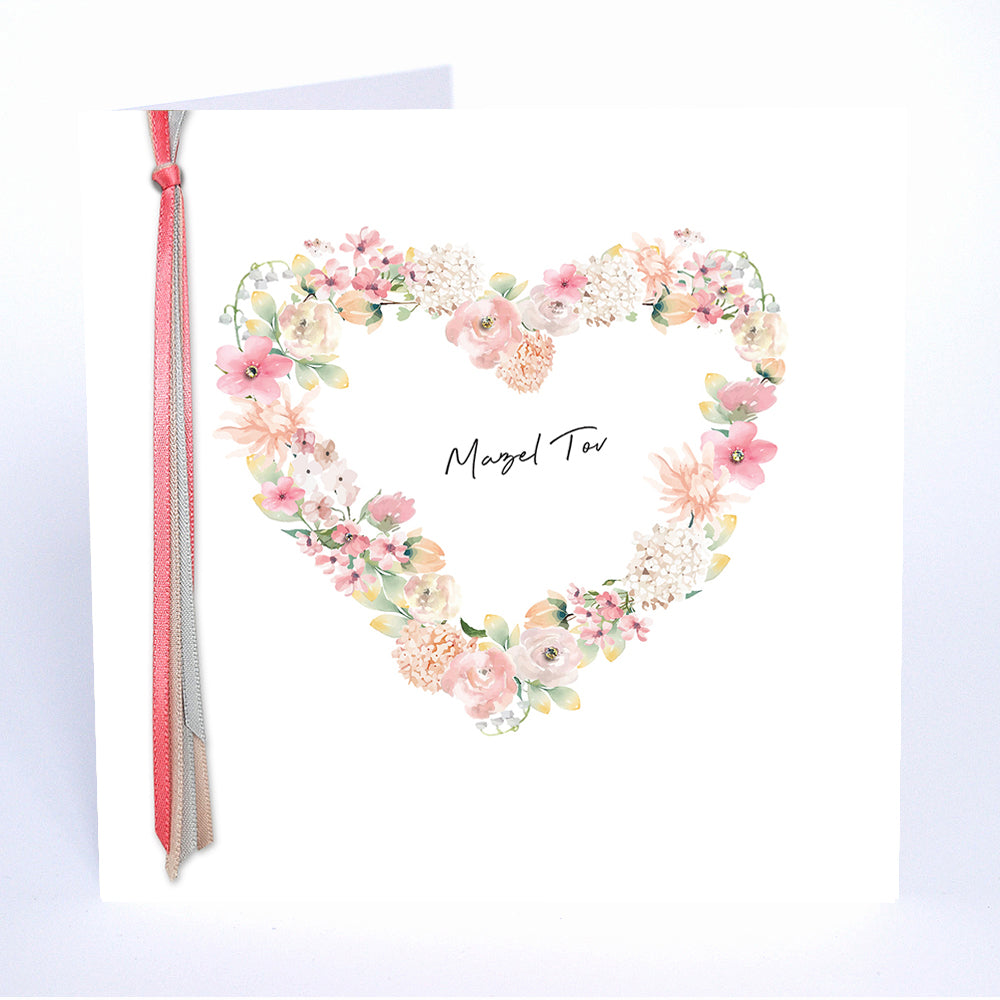 A beautiful range of love, celebration and magic! Featuring a delicate watercolour Mazel Tov illustration in vibrant colours, lovingly embellished with genuine crystals and hand-tied satin ribbons.