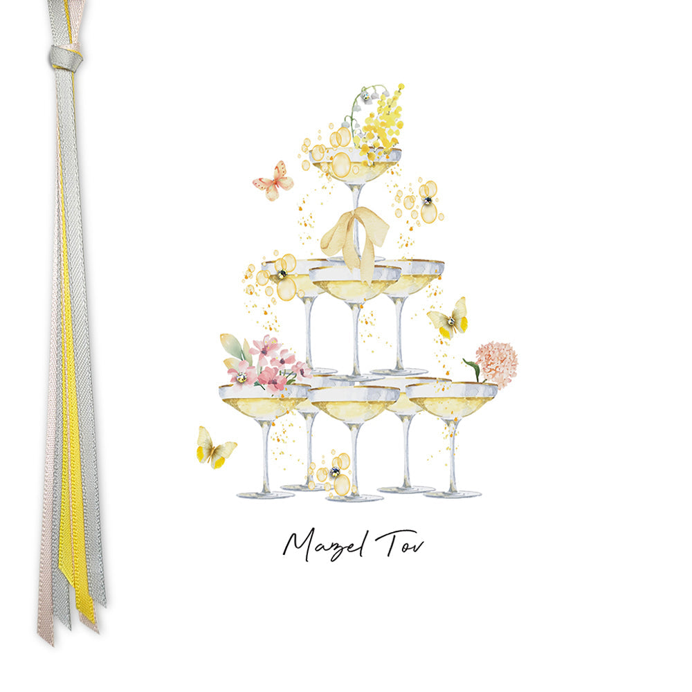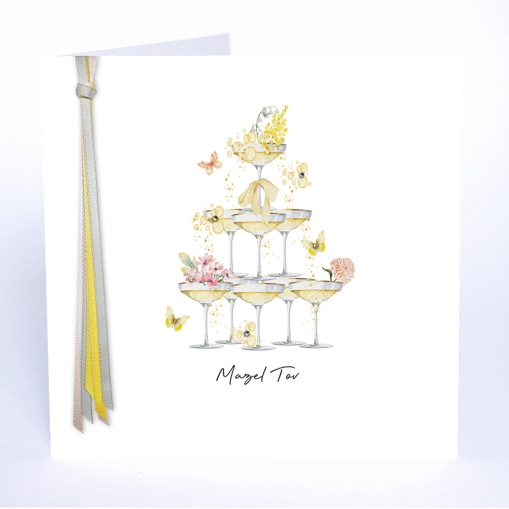 A beautiful range of love, celebration and magic! Featuring a delicate watercolour Mazel Tov illustration in vibrant colours, lovingly embellished with genuine crystals and hand-tied satin ribbons.