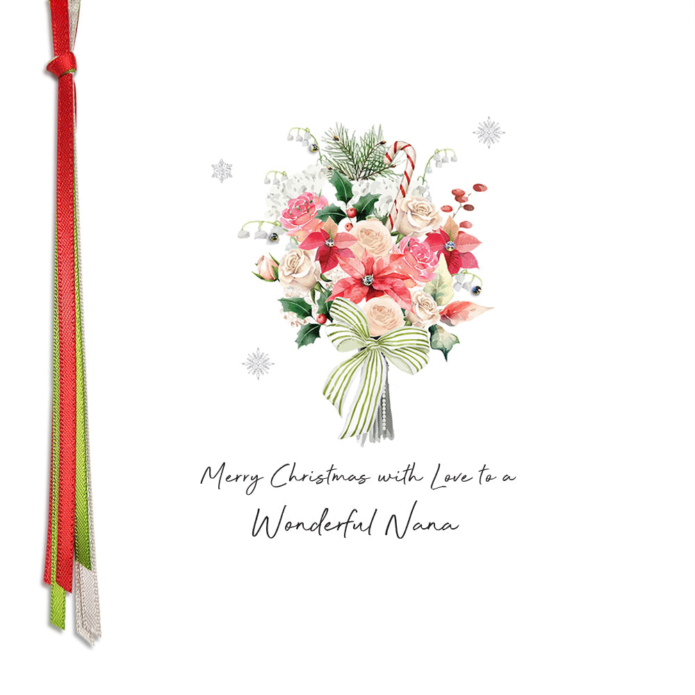 Like tiny wrapped Christmas presents, these watercolour-style Grandma Christmas illustrations are each hand embellished with genuine crystals and a flourish of hand-tied satin ribbons.