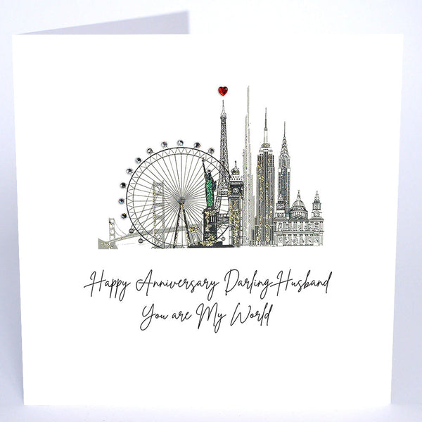 Nature springs to life with butterflies and blossom; cherry, peach, lilac and mimosa ~ it’s pure flower power! Hand painted Large Husband Birthday cards in peachy hues and brilliant iridescent coloured glitters. Each Large design is finished with genuine crystals.