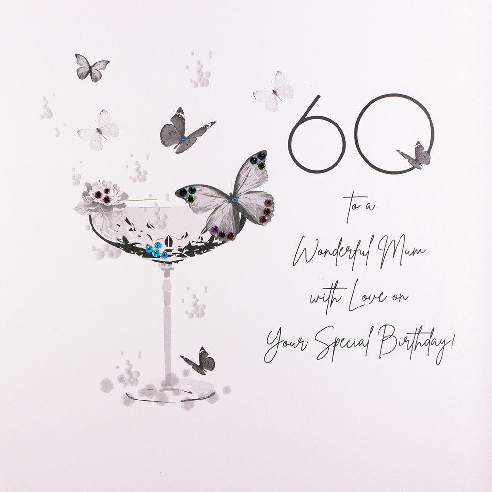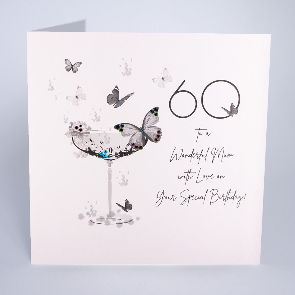 Our exclusive, magical pink blush board shimmers with flecks of sparkling gold. Charming, stylish and elegant large Mum 60th Birthday illustration, delicately and lovingly hand embellished with an array of stunning French sequins and genuine crystals.
