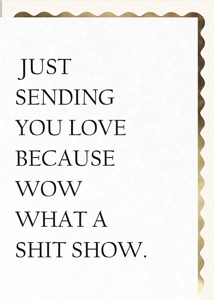 The real beauty of this range of cards however is that it is printed onto the most beautiful Snow White paper fleck with shimming gold, that is made exclusively for Five Dollar Shake in the alps. Mixed with classic black type... love and laughter has never looked so elegant.