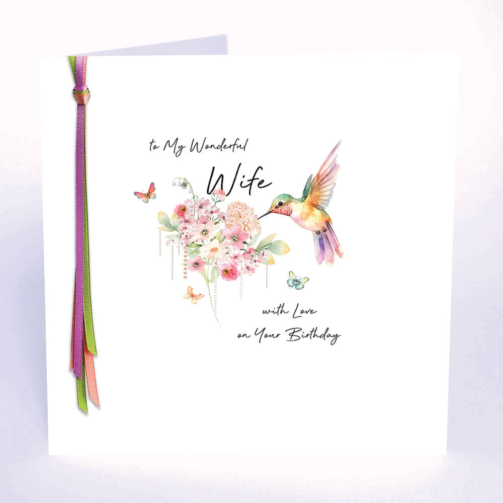 to My Wonderful Wife with Love on Your Birthday (Hummingbird Flowers)