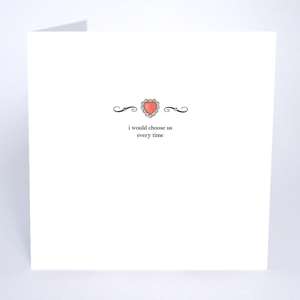 This exquisite Valentine’s Day range harks back to old school Five Dollar Shake designs; elegant, simplistic and minimal. A beautiful genuine crystal heart embellishes a soft matt board. Each design features a classic font sentiment.