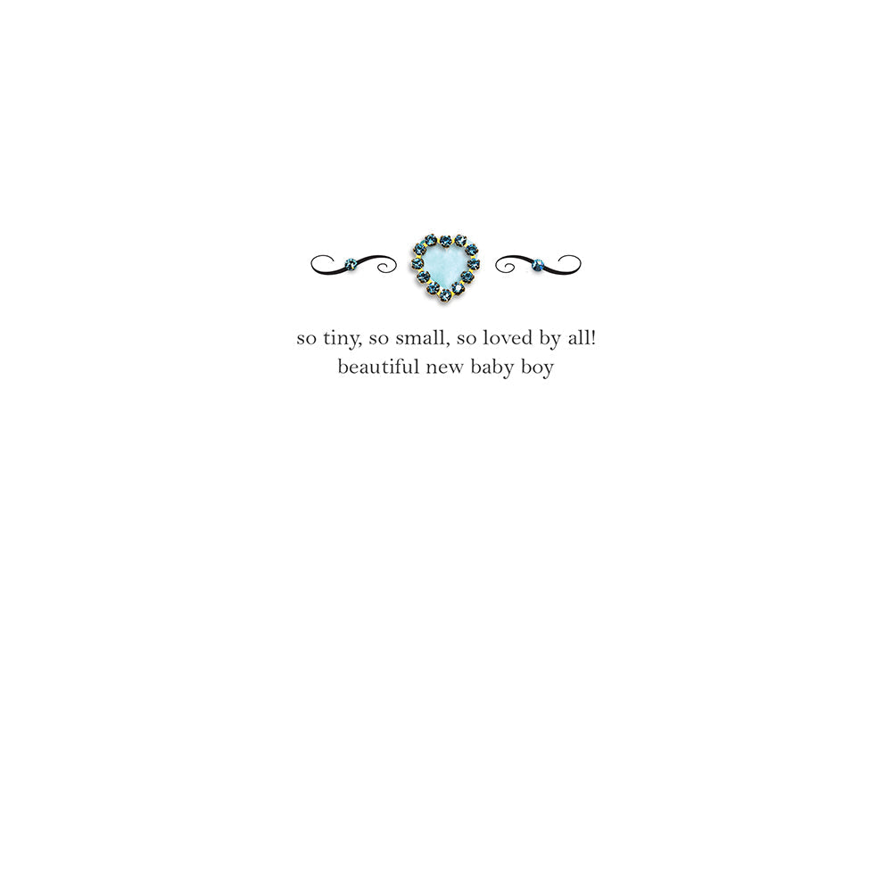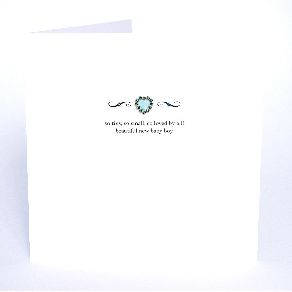 An elegant, stylish and classically sparkling New Baby Boy card. These beautiful quotes of celebration and love are adorned with our exclusive, genuine crystal hearts, printed and delicately hand-finished onto watercolour board in our Sussex studio.