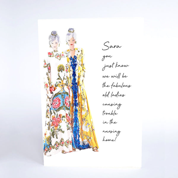 Time to unleash your inner fashionista! A fabulous mix of fashion and humour, this stylish Personalised Birthday design is individually hand painted with sparkling glitters and paint, in our Sussex studio. Designed to be sent for birthdays, occasions and quite frankly because we’re all fabulous – which would you send to your bestie?