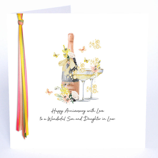A beautiful range of love, celebration and magic! Featuring a delicate watercolour Large Son & Daughter-in-Law Anniversary illustration in vibrant colours, lovingly embellished with genuine crystals and hand-tied satin ribbons.