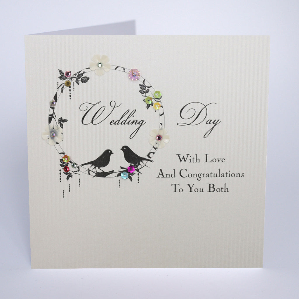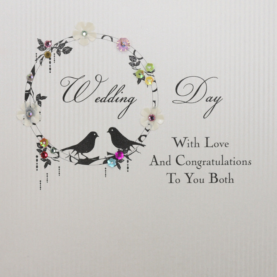 Bringing you our Jewel Box range, this Wedding design is hand embellished with genuine crystals and stunning glitters. A mixture of glamorous print and luxurious shimmering board.